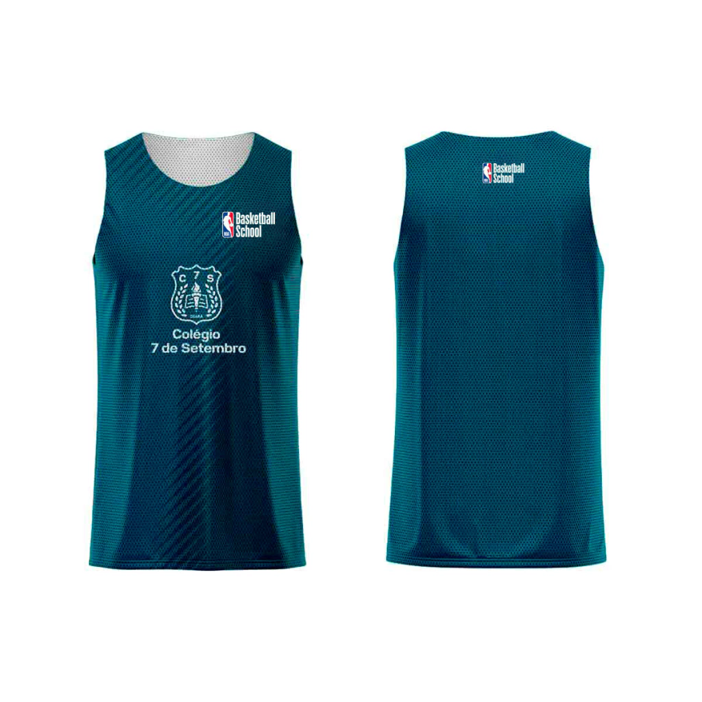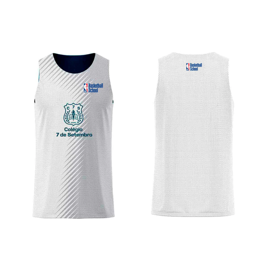 Desenvolvido para o seu treino no NBA Basketball School, o uniforme do aluno é composto por uma regata dupla-face e uma bermuda face simples.